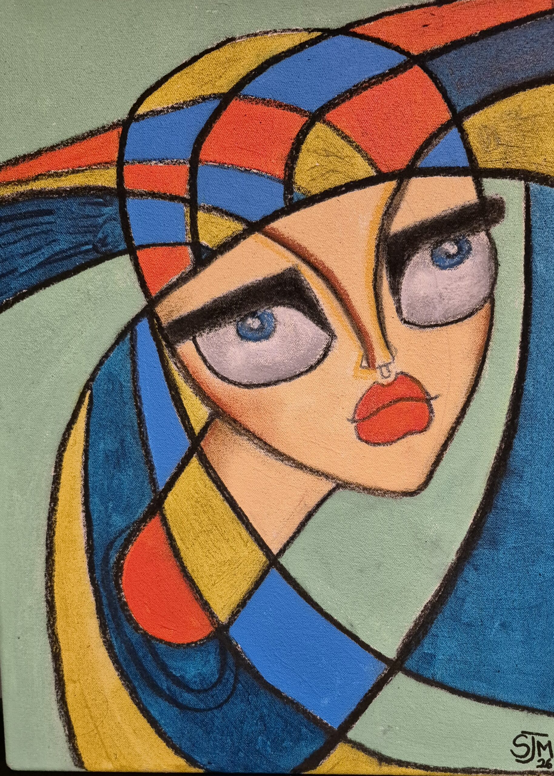 Samantha Millington’s unique style of figurative art pops and zings from the canvas while also nodding in the direction of cubism and goddess figures from pre-history. Both thoughtful and thought provoking Millington’s paintings are a joy to hang, enjoy and contemplate.